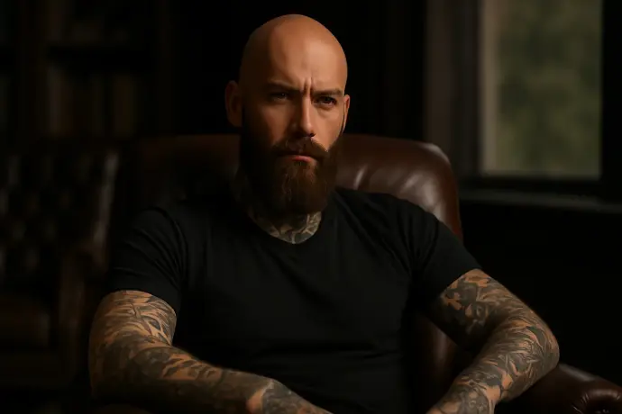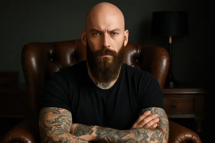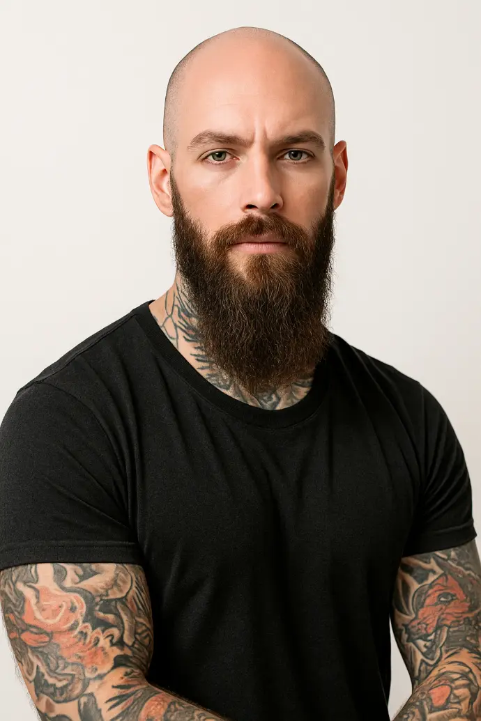 Una cabeza rapada bien cuidada y una barba poderosa son símbolos de un hombre que domina su vida, su imagen y su destino.